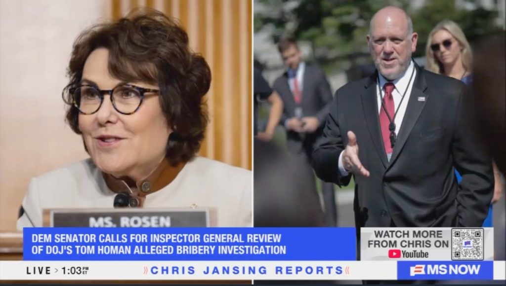 MS NOW: Sen. Jacky Rosen calls for DOJ review of Tom Homan and $50,000 bribe investigation