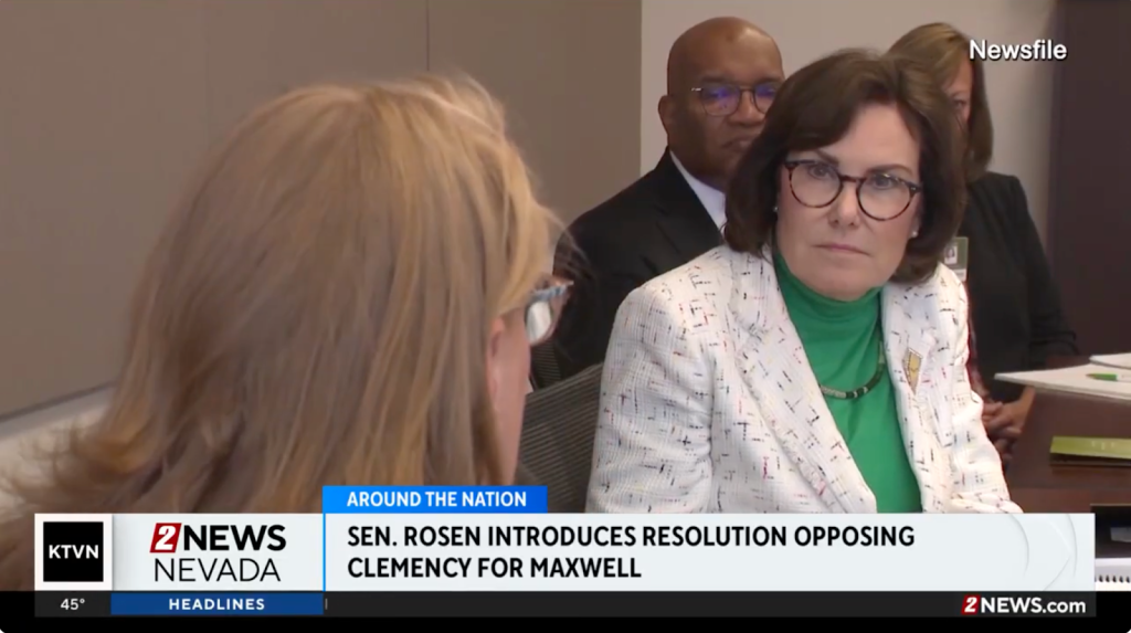 Anchor: “U.S. Senator for Nevada Jacky Rosen has introduced a resolution opposing any clemency from President Trump for convicted sex trafficker Ghislaine Maxwell. It follows Maxwell’s appeal to the president for clemency in exchange for testimony. In a statement the senator tells us, in part, “I want to make sure the U.S. Senate sends a clear message to the White House that a convicted sex trafficker of minors should not receive any clemency.” The resolution would be nonbinding; it would just make this the Senate’s official position if passed.”
